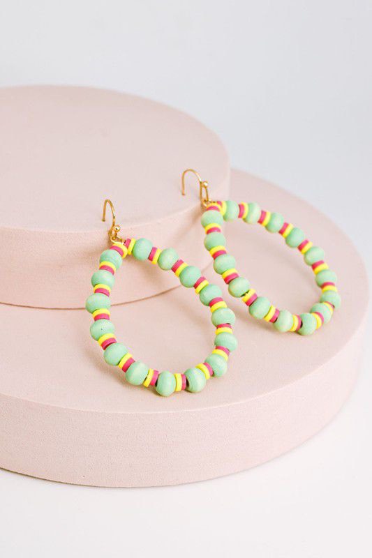 Boho, base metal hoops, wood beads, rubber beads, festival, streetwear, must have, cool