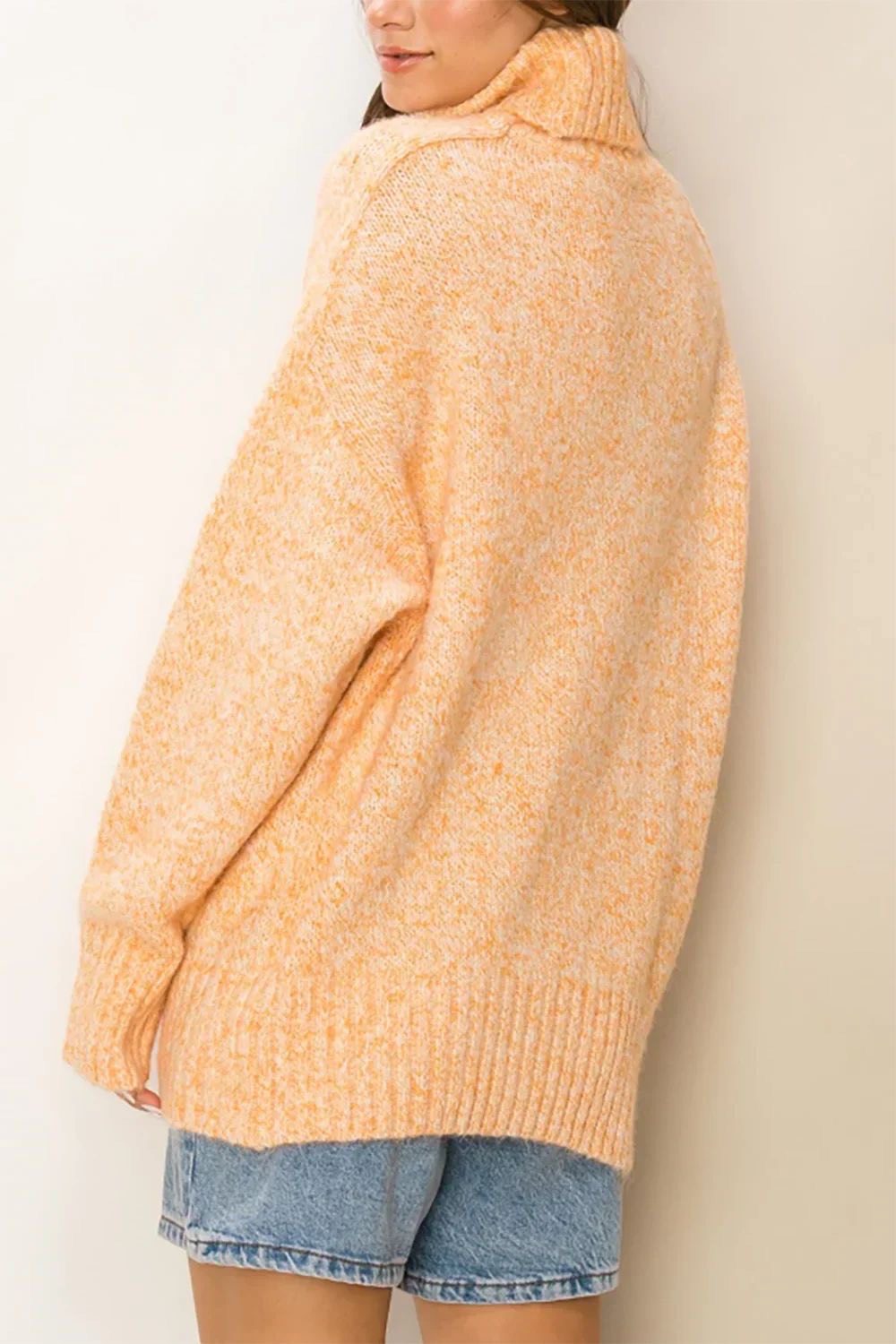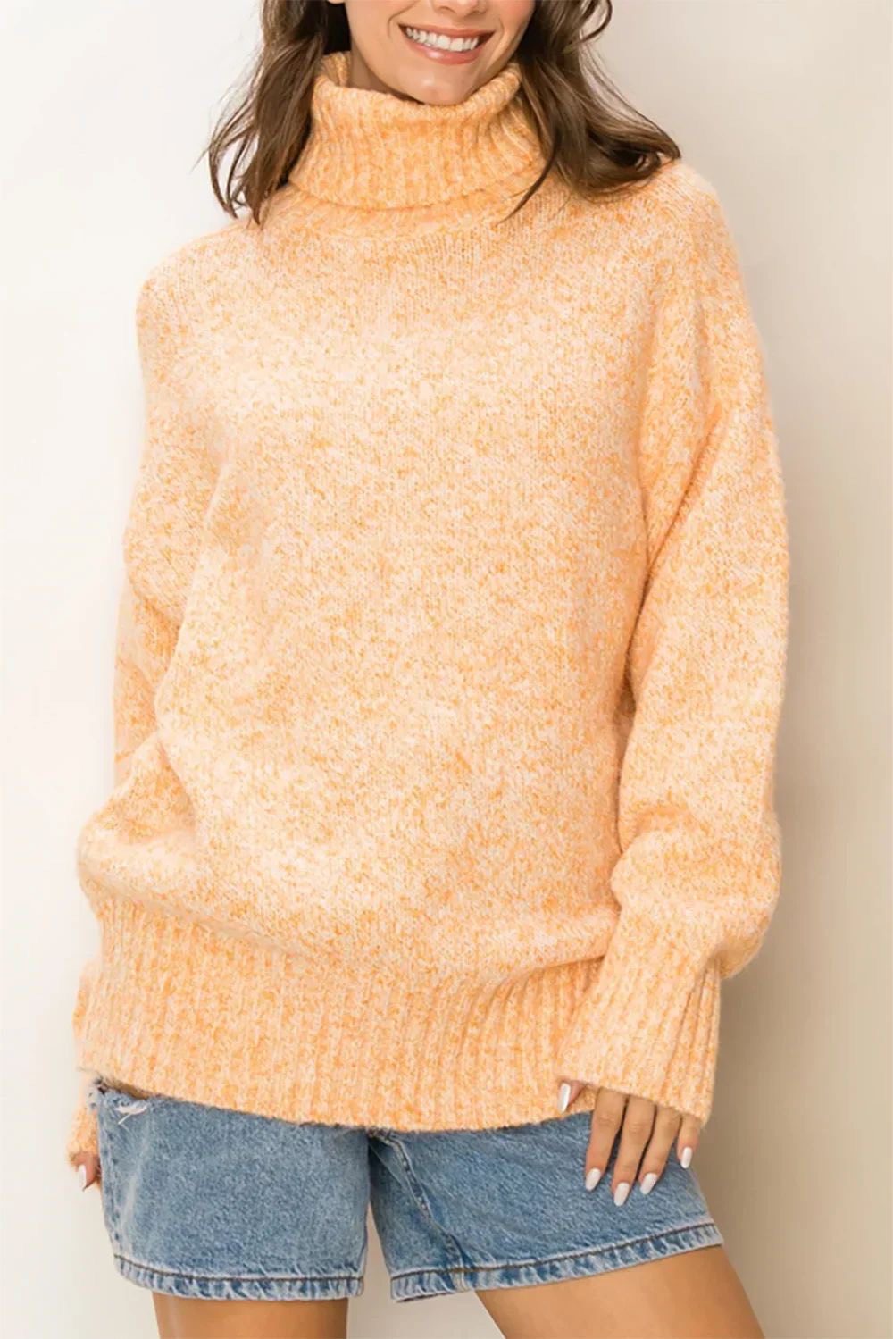 Stay utterly cozy and effortlessly stylish with the chunky knit mock neck oversized pullover sweater. This dreamy speckled knit sweater features the most gorgeous warm peachy-yellow hue that’s absolutely perfect for the season.