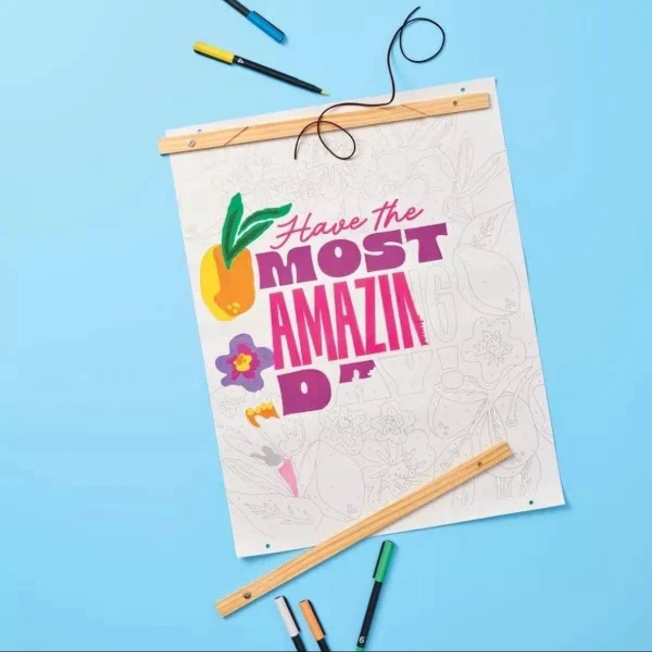 “Have the Most Amazing Day” image on canvas Includes 13 acrylic paint pens and wood frame with hanging cord.