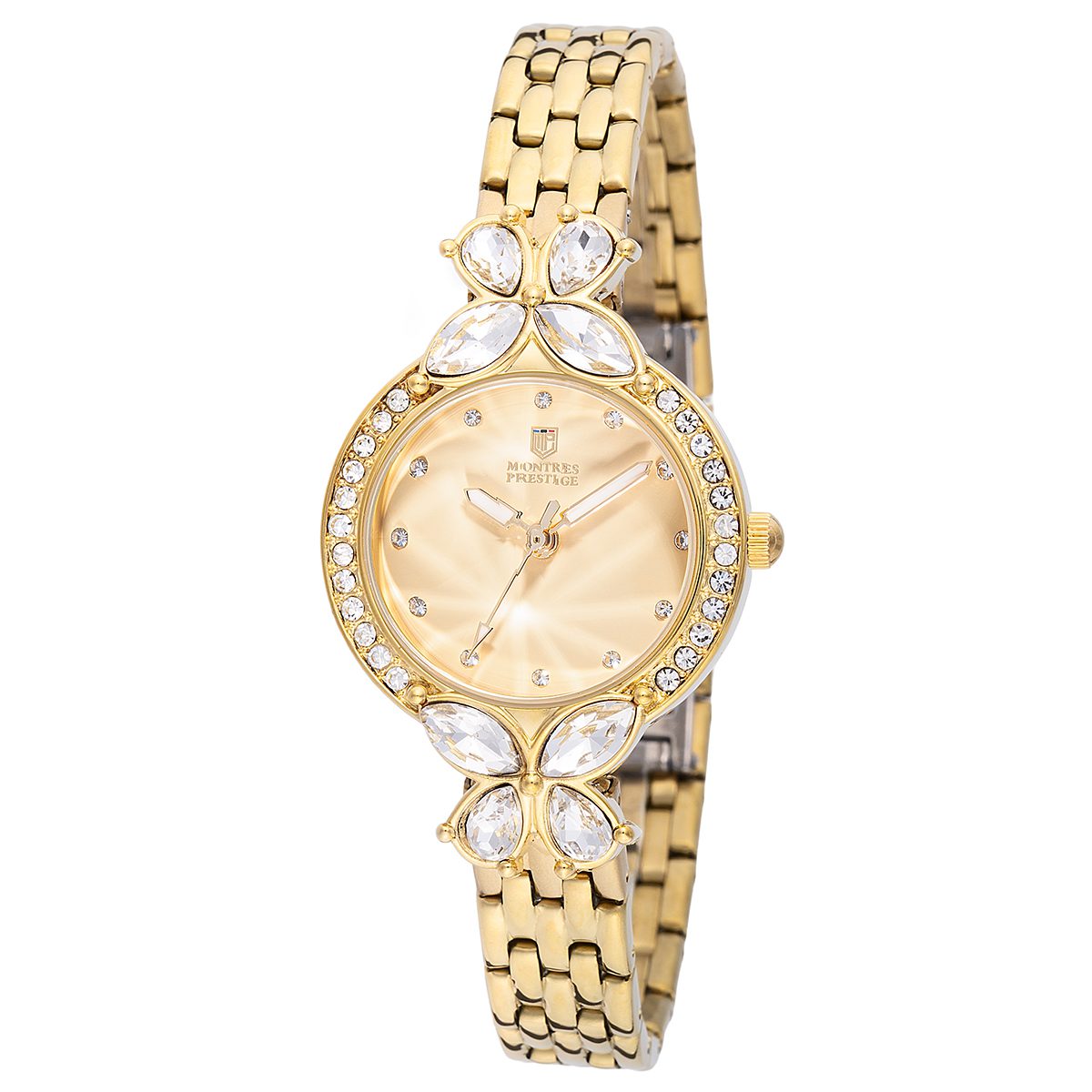 This impressive Montres Prestige watch features a precise Quartz movement as well as a gold case. Its gold, copper dial is enclosed by a highly protective Flame Fusion Crystal. This watch is finished by a strong gold, band, and it offers 30 m water resistance.