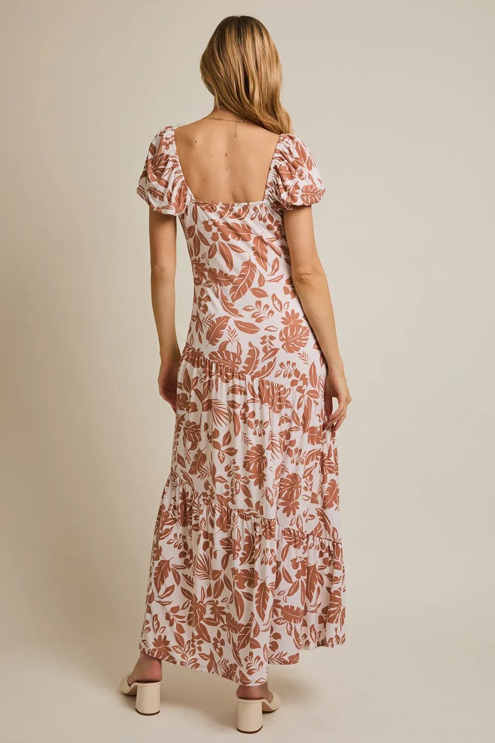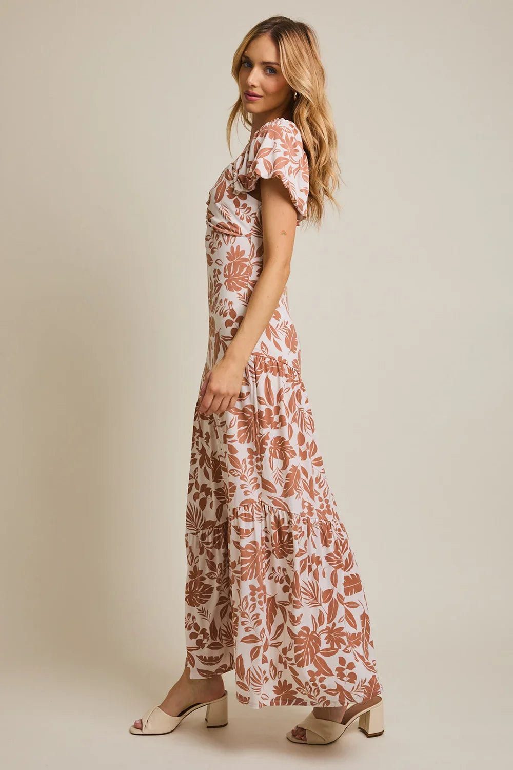 detail creates the most flattering silhouette, while the puffy short sleeves add that perfect touch of romantic femininity. Perfect for beach vacations, summer weddings, or tropical-themed events, this flowing maxi dress ensures every woman