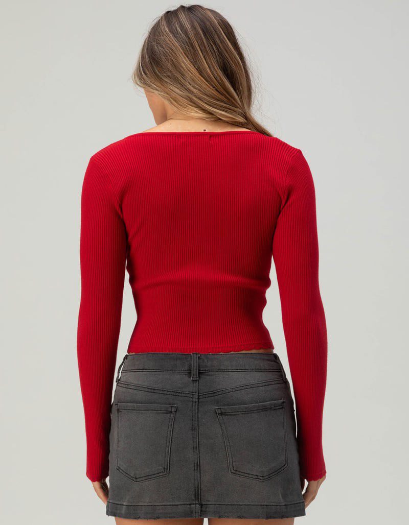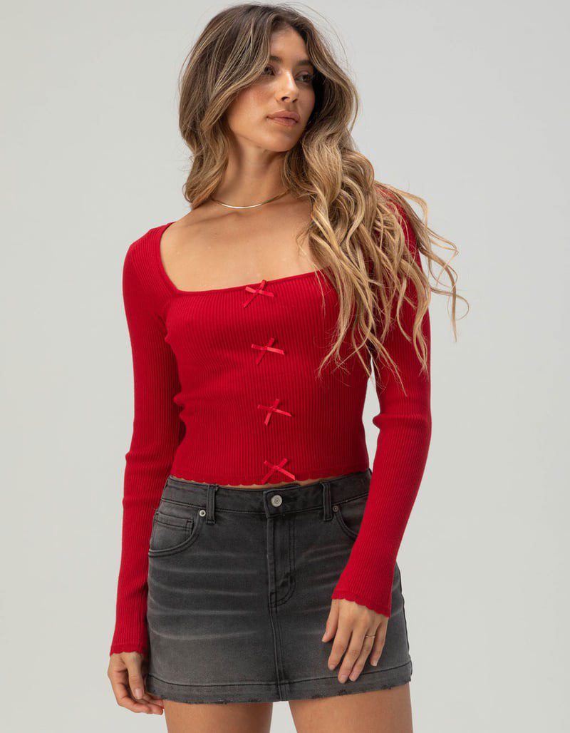 RSQ Women’s Long Sleeve Square Neck Rib Bow Top